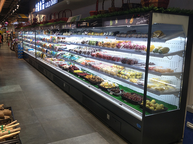 盒馬生鮮生活超市風(fēng)幕柜案例